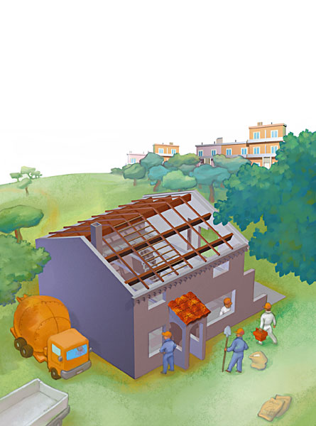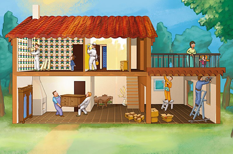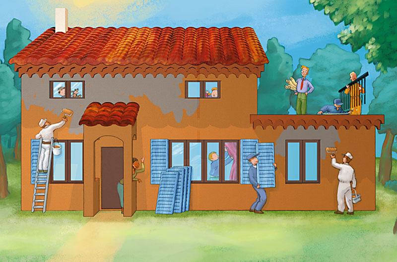 Le menuisier pose les fenêtres et les portes. Claude vérifie le planning: les travaux ont pris six mois de retard. La maison ne sera jamais prête pour la rentrée des classes!