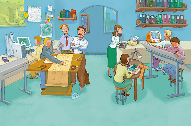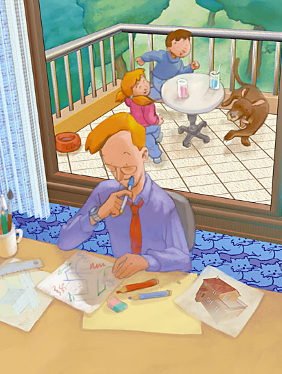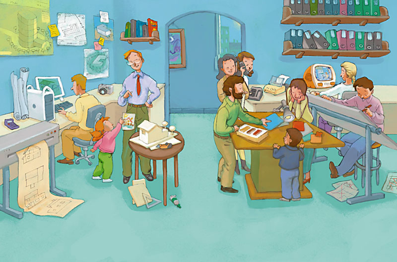 Claude est architecte, il dessine des maisons, des écoles et de nouveaux quartiers. Mais cette fois-ci, il va construire sa maison près de la rivière.La famille approuve les plans.