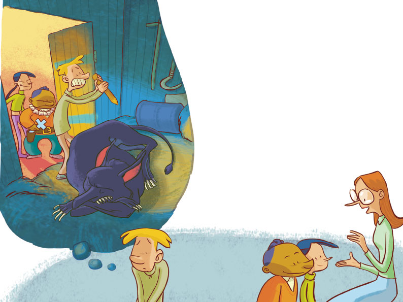 D'où vient cet étrange grognement? Émilien surmontera-t-il sa peur pour affronter le monstre dans le noir? Bonaventure et Julie sauveront-ils leur ami?