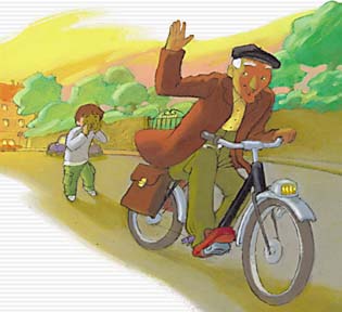 Je l'aime bien le petit vieux du quartier : il me fait rire. Quand je le vois arriver sur son vélo trop petit, avec son