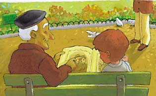 béret. En regardant juste ses yeux, on ne dirait pas qu'il est vieux. Je lui rends son chausson et je lui demande :
