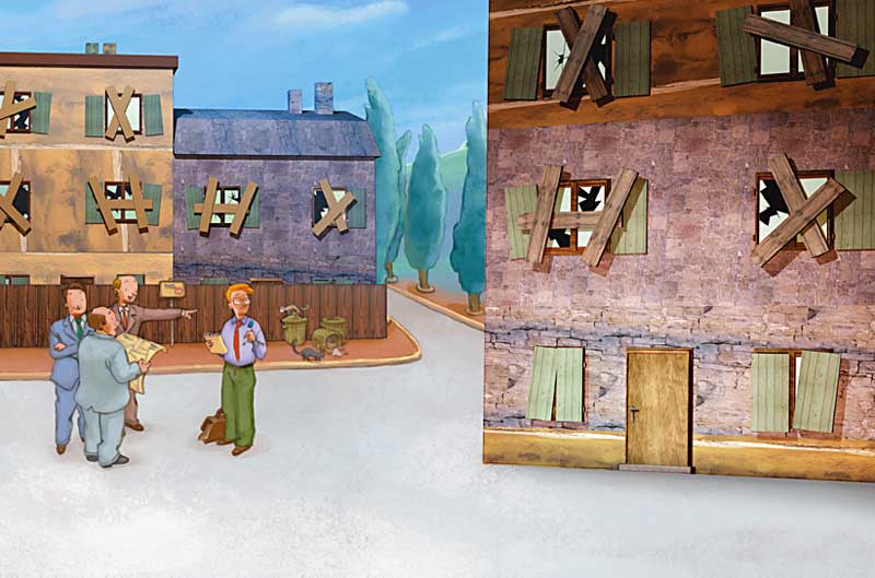 Claude est à l'écoute, il va devoir combiner tout ce que le maire lui demande. Il imagine déjà les maisons, la petite place avec une fontaine et un parc pour les enfants.
