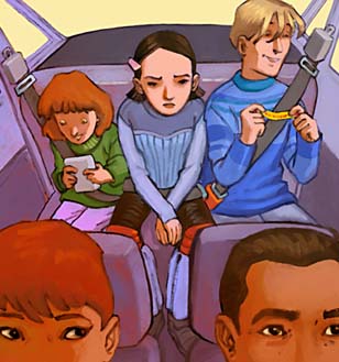Noël et Romarine ne peuvent pas attendre sans rien faire. Ma sœur a sorti sa Gameboy et elle joue en nous tournant le dos. Mon frère a sa poche de Carambars sur les genoux.