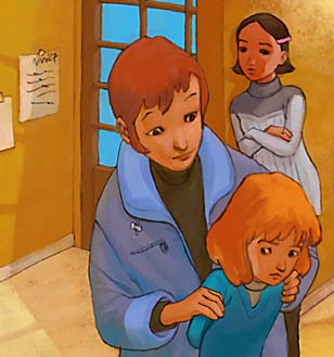 – Il y a plein de filles de mon âge! Je vais aller au club des p’tits loups, hein, Maman ? J’ai donné rendez-vous à une fille. Elle s’appelle Alicia. Elle habite à Melun. Ses parents sont divorcés.