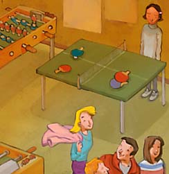 Après le déjeuner, c’est la méga réunion dans le hall. Monsieur Méric, le directeur du “Gai soleil”, nous présente les animations de la semaine. Il y a la sortie-raquettes, la sortie-patinoire, la soirée-casino, la soirée-raclette…