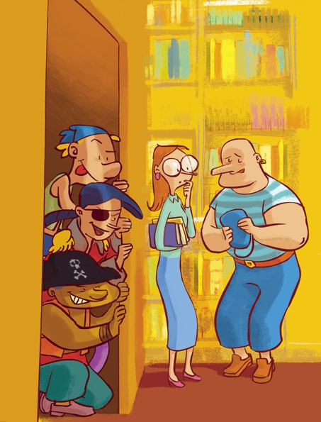 Emilien, Bonaventure et Julie sont intrigués. Tous les jours Robert le pirate rend visite à Jeanne la libraire. Que trament-ils? Quel est leur secret? Ils imaginent tout... sauf la vérité!