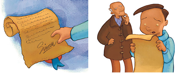 Un jour, devant le miroir de sa salle de bains, Simon piqua une crise de nerfs. Il attrapa ses deux oreilles et se mit à tirer dessus de toutes ses forces.