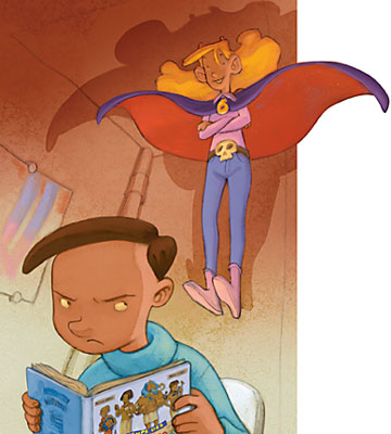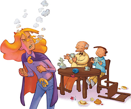 Le garçon redressa la tête, un peu affolé. Il vit une jeune fille adorable aux cheveux blonds et infiniment longs.