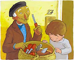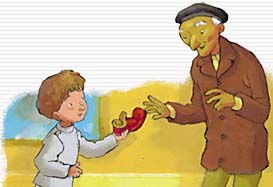béret. En regardant juste ses yeux, on ne dirait pas qu'il est vieux. Je lui rends son chausson et je lui demande :