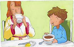 - Ben oui, mon p'tit gars. Je ne sais pas faire la cuisine et depuis que ma femme est partie, je mange des petits